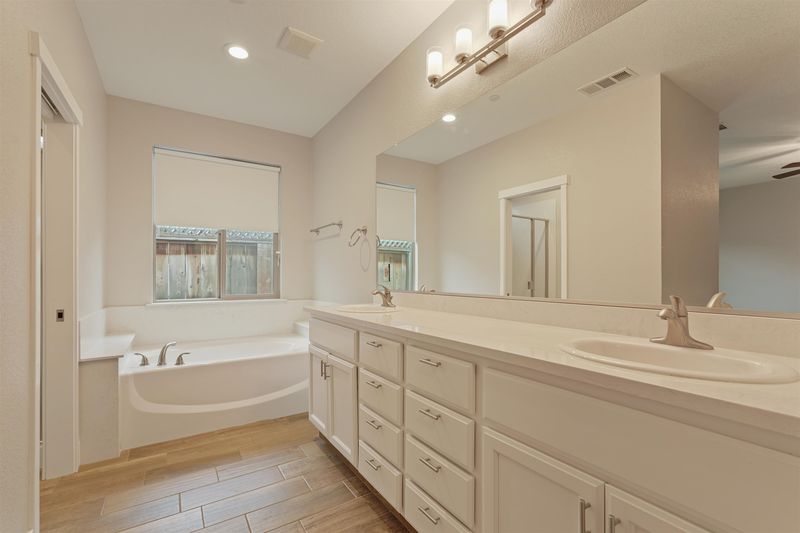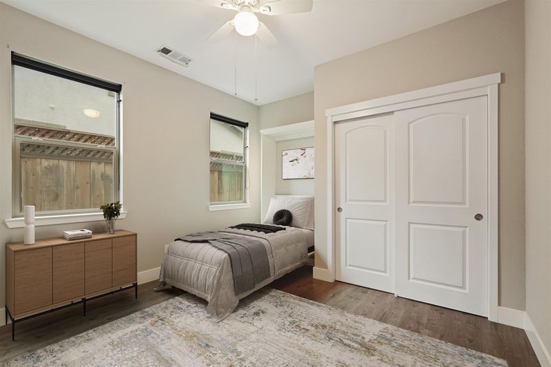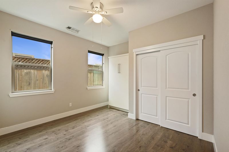 Beautifully upgraded single-story in Bridle Ridge offering 2,511 sq. ft. with 4 bedrooms and 3 bathrooms, built in 2018 on a 7,332 sq. ft. lot with a 3-car garage, located across the street from an expansive park. The home features formal living and dining rooms plus an open-concept great room with an eat-in kitchen and large center island, ideal for everyday living and entertaining. Upgrades include a gas Generac whole-house generator, tankless water heater, water filtration system, French doors separating two bedrooms, window tinting on front bedrooms, and two Murphy beds. Accessibility features include a step-in bathtub/shower and roll-in shower. Extended, covered front and back patios with a ceiling fan and speaker pre-wiring, along with artificial turf, drip irrigation front and back, and a shed slab, complete this low-maintenance, move-in-ready home in a desirable Oakdale location.