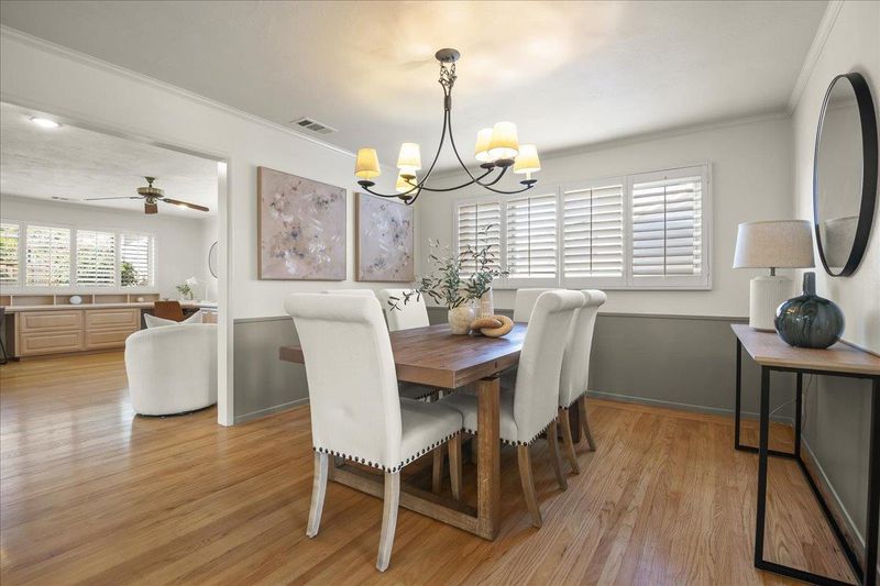 Spacious single-level home offering a thoughtfully designed and highly versatile floor plan suited to a wide range of lifestyles. The home features four bedrooms plus a large bonus room with soaring ceilings, expansive windows, recessed lighting, and built-in cabinetry, ideal for recreation, media use, meetings, or large gatherings. A separate, generously sized home office/work area includes extensive custom built-in cabinetry and storage and can be easily converted into a second primary-style suite, making the home well suited for multi-generational living. Formal living and dining rooms provide comfortable spaces for entertaining, while the inviting eat-in kitchen features high-end cabinetry, ample storage, and recessed lighting. Quality cabinetry continues throughout the home, creating a cohesive and polished look. Tile and hardwood flooring throughout are complemented by plantation shutters and recessed lighting. The expansive backyard with pool offers excellent indoor-outdoor living. Conveniently located within walking distance to elementary, middle, and high schools.