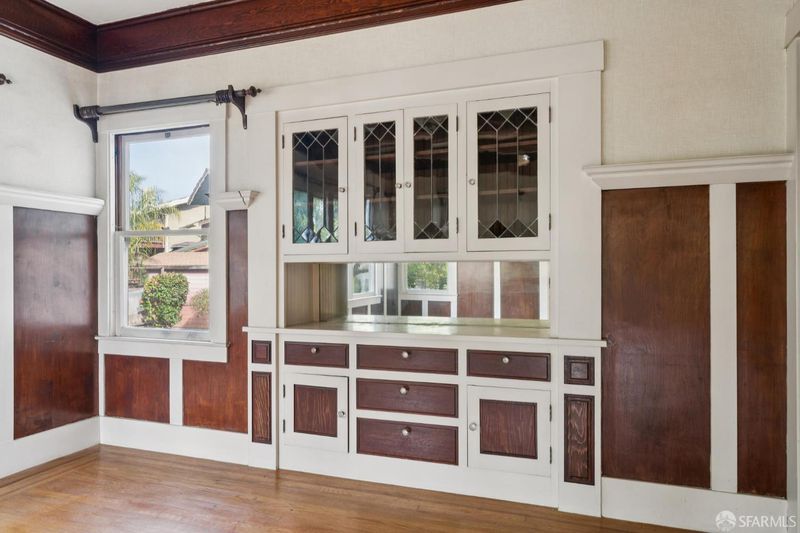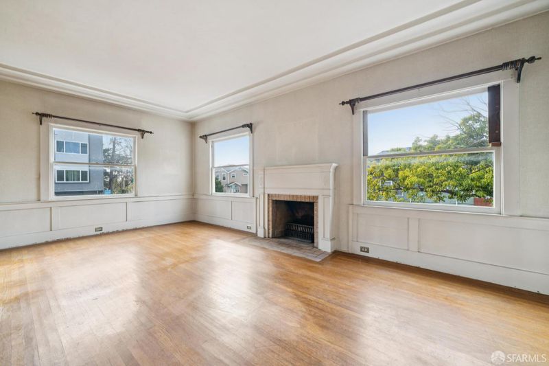 Perched on a prized corner lot, this grand residence showcases timeless charm and beautiful period details throughout. A wood-paneled formal entry opens to a spacious living room with a classic wood-burning fireplace, flowing into an expansive dining room with box-beam ceilings and original built-ins. The oversized kitchen with sunlit breakfast room connects conveniently through a pantry, ideal for daily living and entertaining. An office or guest bedroom completes the main level. Upstairs offers three generously sized bedrooms, a flexible bonus room, a full bath and ample storage. The basement includes laundry and abundant expansion potential. A detached one-car garage provides space for parking, a studio, or office. Included with the property is an adjacent vacant lot, offering exceptional development or garden potential. Ideally located near Lake Merritt with easy access to transportation, shopping, dining, and recreation.