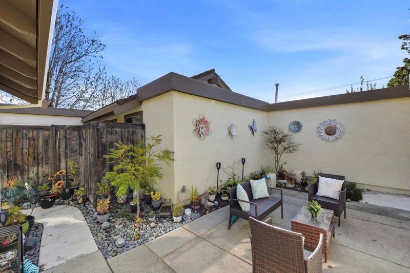 Rarely available ground-floor townhouse lives like a single-family home. Meticulously maintained & thoughtfully updated by the original owner for 47 years. No kids, no dogs. Featuring 2 bedrooms/ 2 bathrooms, the home offers a bright, welcoming layout that feels larger than the sq ft. Updated Armstrong flooring throughout, double-pane windows, smooth ceilings, recessed lighting, and fresh interior paint. Kitchen and bathrooms showcase durable Kerrock countertops, wood cabinetry, and clean, timeless finishes. New cordless blinds & shutters enhance the living area with high ceilings, while bypass shutters provide privacy in the primary bedroom that also offers high ceilings. A large, spacious private patio extends the living space outdoors; perfect for entertaining, gardening, or relaxing in the fresh air. Add'l highlights include double-car garage w direct access to the house & a door to the patio for gardening. Very desirable location in a smaller pod of just 3 units, offering added privacy compared to the typical 6-unit configuration. The beautifully landscaped community features lush greenery & sparkling pool w bathrooms & community room. Top schools, shopping, restaurants, & Starbucks close by & easy access to Hwys 85 & 280 for a quick commute to major tech employers.