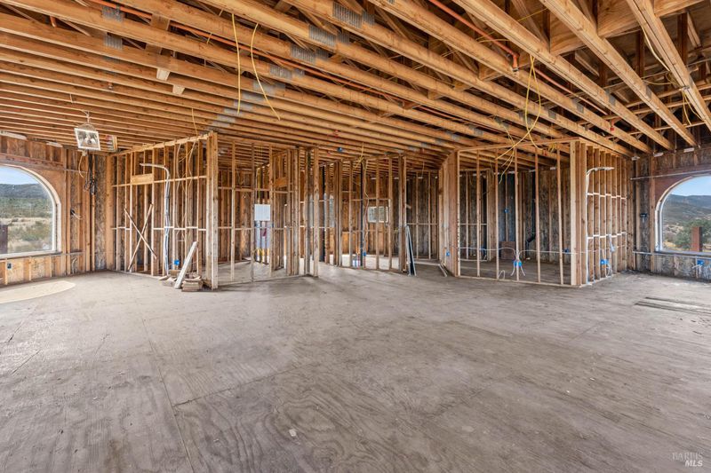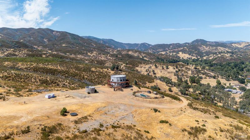 Rare opportunity to own one of the most unique, unfinished estates in Lake County, perched on a hilltop with panoramic views of Mount Konocti and Clear Lake and surrounded on three sides by open space & BLM land for unmatched privacy. This castle-inspired 5,171 sq ft residence with 796 sq ft garage was envisioned with bold architecture, a battlement roofline, cable-railed decks, mini-split HVAC, dumbwaiter, and even a hidden bookshelf leading to a secret room. Plans include 3-4 bedrooms, 3.5 baths, plus a rooftop designed for entertaining. The property offers incredible potential for a luxury residence, retreat residence/center, film location, festival venue, or glamping escape. Expansive third-floor views stretch across the lake, vineyards, and mountainsan ideal setting for photography, events, or creative projects. Construction is partially complete; much of the heavy lifting (foundation, framing, roof, septic, water, fire sprinklers and power) is done. Bring your vision, contractor, and imagination to finish what was started and create a landmark property like no other. This is a chance to design your dream while capitalizing on the groundwork already in place.