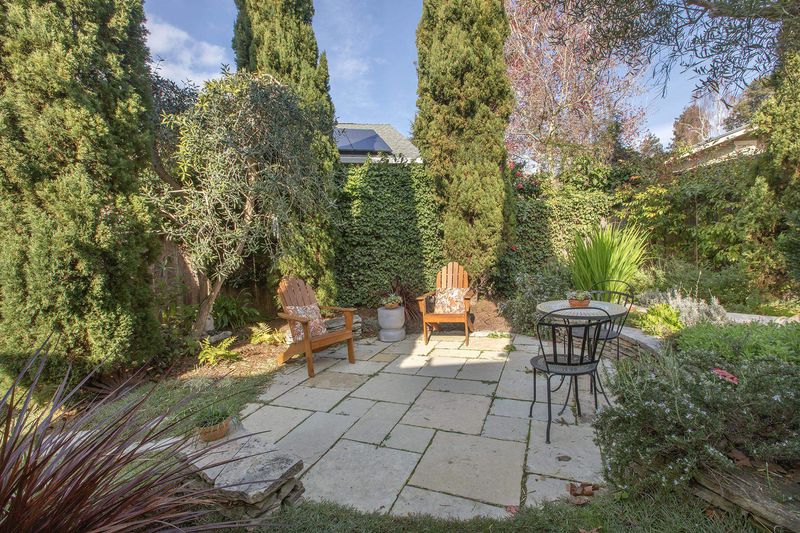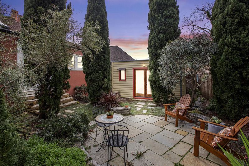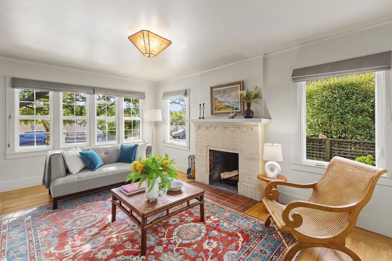 A true Berkeley work of creativity and re-use—an inspired Santa Fe–style bungalow in the heart of Northbrae, just moments from Monterey Market & some of Berkeley’s favorite shops & cafés. Warm & inviting with distinctive character, this 2BD/2BA home blends timeless charm with thoughtful, artisan-level upgrades, including a serene primary bedroom with a beautifully crafted built-in wooden backboard & side table, plus two lovely bathrooms: a main bath with the original cast iron tub and Italian stone tile, and a second European style bath with a skylight, Hansgrohe shower & a stunning custom western red cedar sliding door. At the heart of the home is a one-of-a-kind Country French chef’s kitchen, created by a seller who worked as a private chef for 25 years. A rare restaurant-grade vintage WOLF range, reclaimed 19th-century pine countertops sourced from London railroad stations, a Greenstone sink from a Vermont quarry, Fisher Paykel refrigerator, antique brass faucet & a cushioned rubber floor, make it as functional as it is memorable. The delightful garden offers room to relax plus a remodeled studio with Italian tile, salvaged windows & hand-painted artistic details - perfect for an office, art space, guest retreat or workout room. Home energy score of 8.