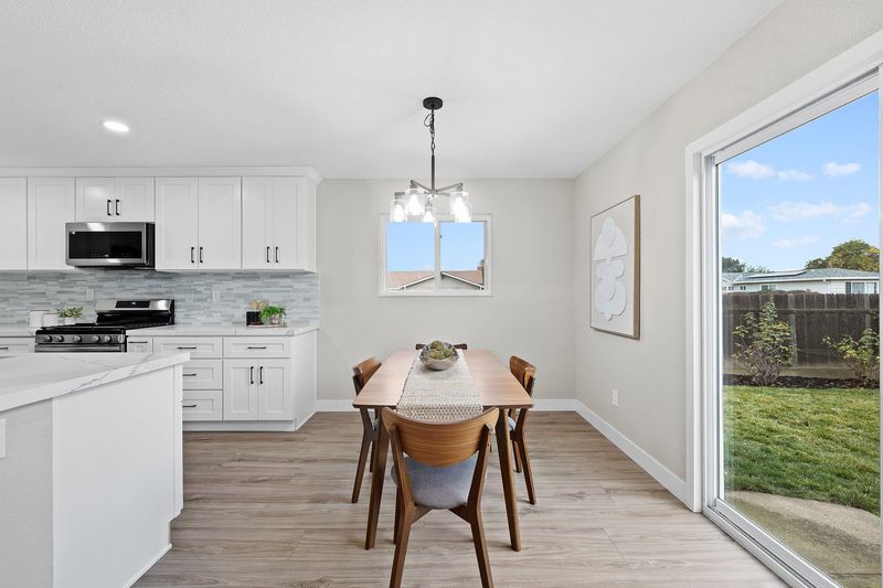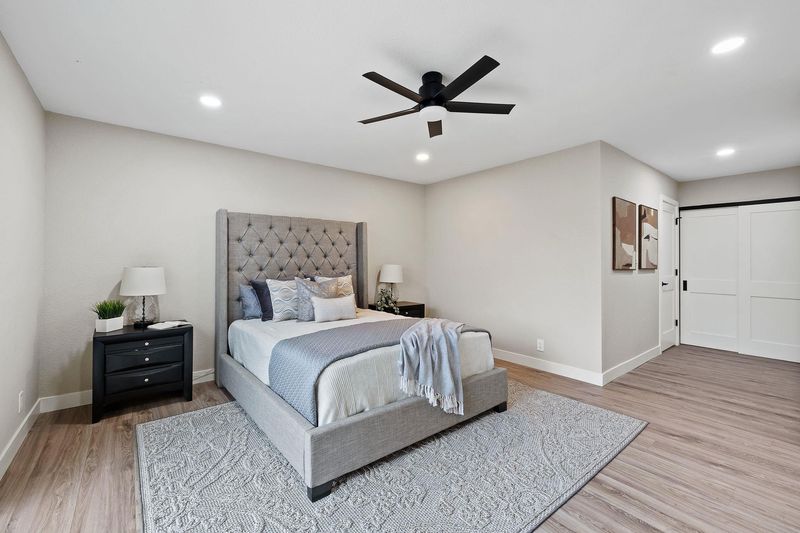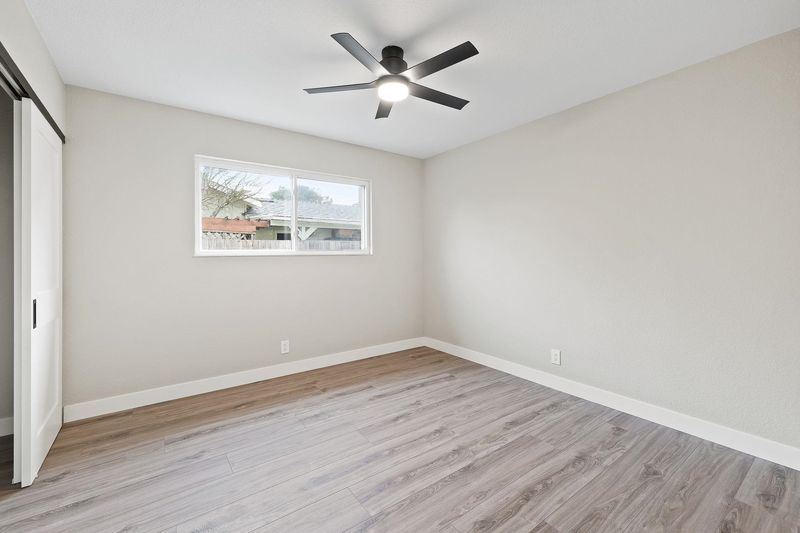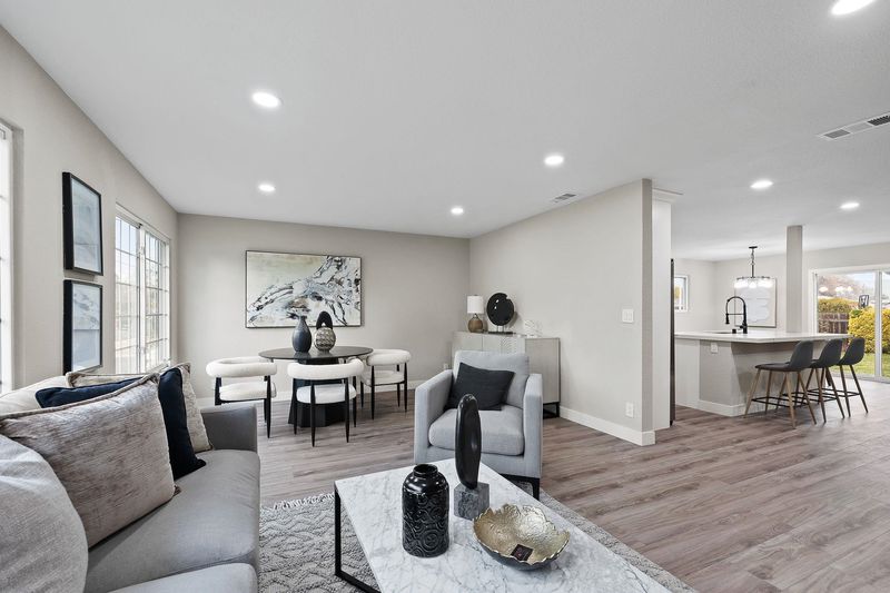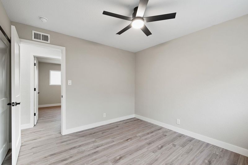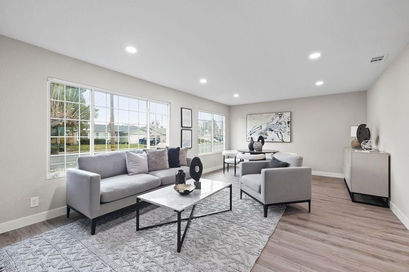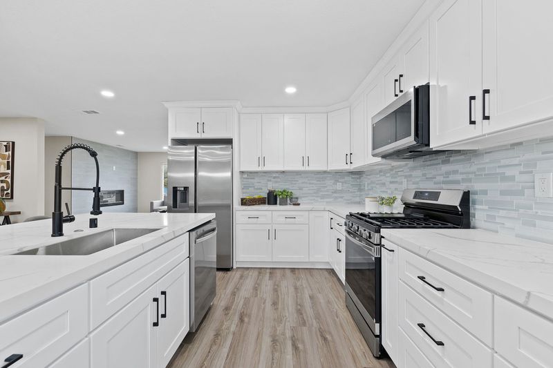 Stunningly remodeled 4-bedroom, 2-bath single-story home on a corner lot in a peaceful neighborhood. This open-concept layout features a designer kitchen with new shaker cabinetry, quartz countertops, and stainless steel appliances. Upgrades include LVP flooring throughout, LED lighting, dual-pane windows, a modern fireplace, updated bathrooms, and ceiling fans in all bedrooms. Freshly landscaped front and back yards add the perfect finishing touch. A must-see!