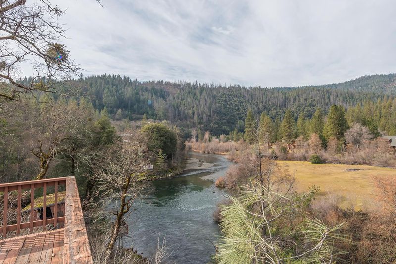 Spectacular Trinity Riverfront Retreat with Guest Home. Welcome to your own slice of paradise on the banks of the Trinity River. This exceptional riverfront property offers a rare combination of privacy, natural beauty, and income potential, all set against the stunning backdrop of one of Northern California's most sought-after rivers, all on 1.36 acres. The main home features 3 bedrooms, 2 bathrooms, 3,044 SF of living space, thoughtfully designed to capture the river views. A dramatic wall of windows floods the home with natural light. Inside, you'll find wood floors, T & G knotty pine ceilings, and vaulted ceilings that create a warm, lodge-style ambiance. Step outside to massive wraparound decking, perfect for entertaining, relaxing, or simply listening to the river flow by. Stairs lead directly down to the river, for fishing, swimming, or peaceful moments by the water. The property also includes a fruit orchard and 3 outbuilding storage sheds, providing ample space for tools, toys, and projects. Adding incredible value is a separate one-bedroom guest home, ideal for Airbnb, vacation rental or long-term tenant, making this property as smart an investment as it is a dream home.
