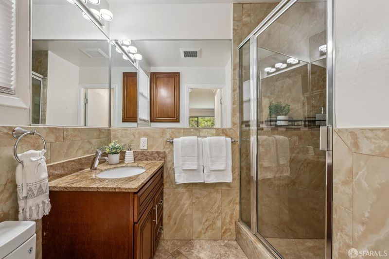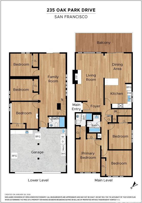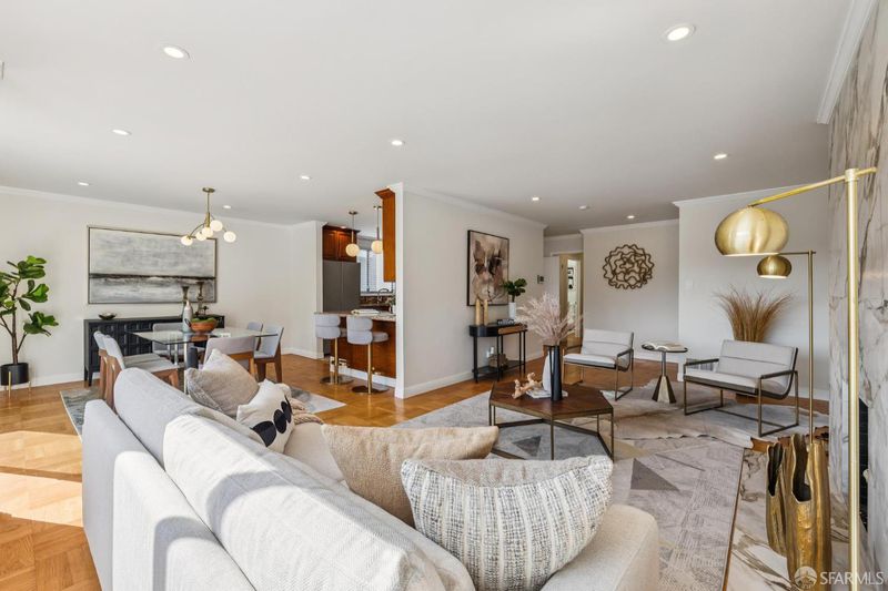 Welcome to a fully detached mid-century retreat with sweeping views in the highly sought-after Forest Knolls neighborhood. The main level offers a stylish, modern layout featuring three bedrooms and two bathrooms, highlighted by a dramatic floor-to-ceiling fireplace and a sun-filled living room that seamlessly connects to the dining area and updated kitchen. Oversized windows and a sliding glass door lead to a spacious deckperfect for indoor-outdoor entertaining. Two street-facing bedrooms enjoy expansive windows overlooking a lush hillside with no homes directly across, providing privacy and serene green vistas. The lower level includes a generous family room, a private bathroom, and three additional bedrooms. With separate access through the side yard, the downstairs space offers excellent flexibility. A large side-by-side two-car garage provides ample parking and storage. Ideally located near UCSF Medical Center, the Inner Sunset and Castro neighborhoods, and just steps from Clarendon Elementary School, one of San Francisco's top-rated public schools.