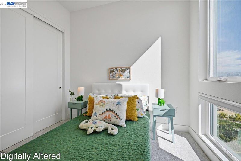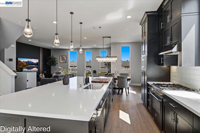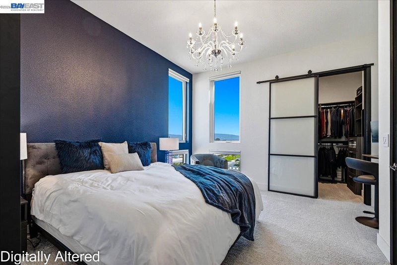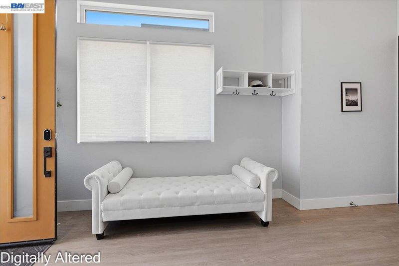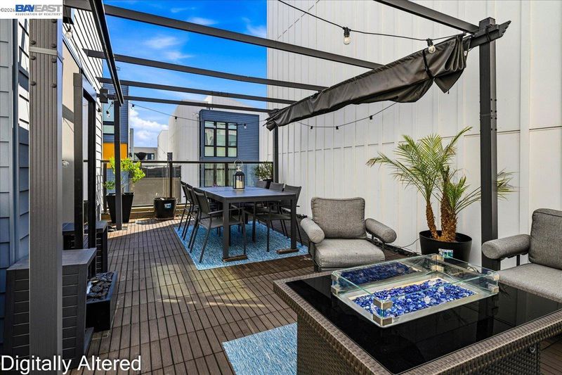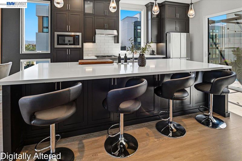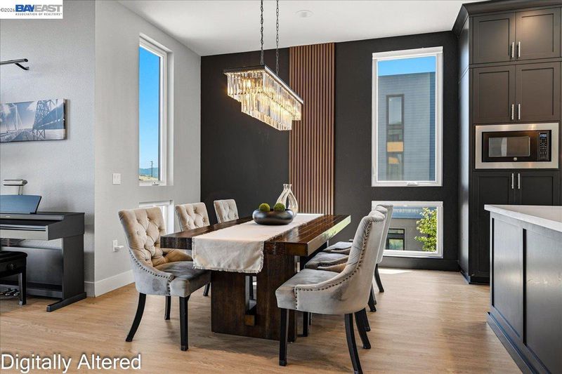 Experience refined living in this beautifully upgraded 4-bedroom, 3.5-bath residence built in 2022. Street-facing and an end unit, the home offers open park views, no direct neighbors in front, and abundant natural light throughout. The multi-level layout begins with a ground-level junior suite featuring soaring 14-foot ceilings, full bath, kitchenette, and generous living space, ideal for guests, multigenerational living, or a private home office. Designed for modern living, the main level features an open-concept layout with floor-to-ceiling windows. The gourmet kitchen is equipped with custom ceiling-height cabinetry, a 6-burner gas range, quartz countertops, and a large island with ample storage, flowing into the dining and living areas. A rooftop patio just off the kitchen extends the living space outdoors, ideal for BBQs, lounging, and entertaining. Upstairs, the primary suite offers dual vanities + a walk-in closet, while an additional bedroom includes its own ensuite bath and walk-in closet. A rare oversized two-car garage accommodates two cars plus space for a home gym or storage, complete with 14-foot ceilings. Ideally located near waterfront parks, Seaplane Lagoon, ferry terminals, schools, and easy access to San Francisco & Oakland. Don't miss out on this one!
