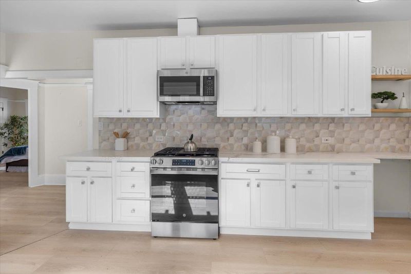 - Dishwasher, Gas Range, Microwave, Refrigerator, Stone Counters, Disposal, Gas Range/Cooktop, Updated Kitchen
