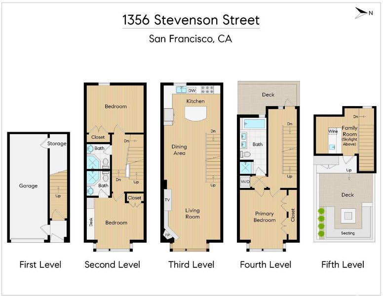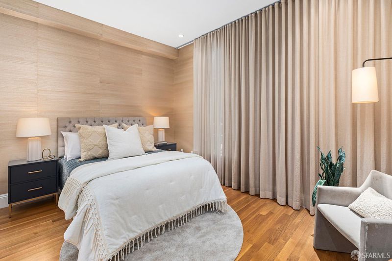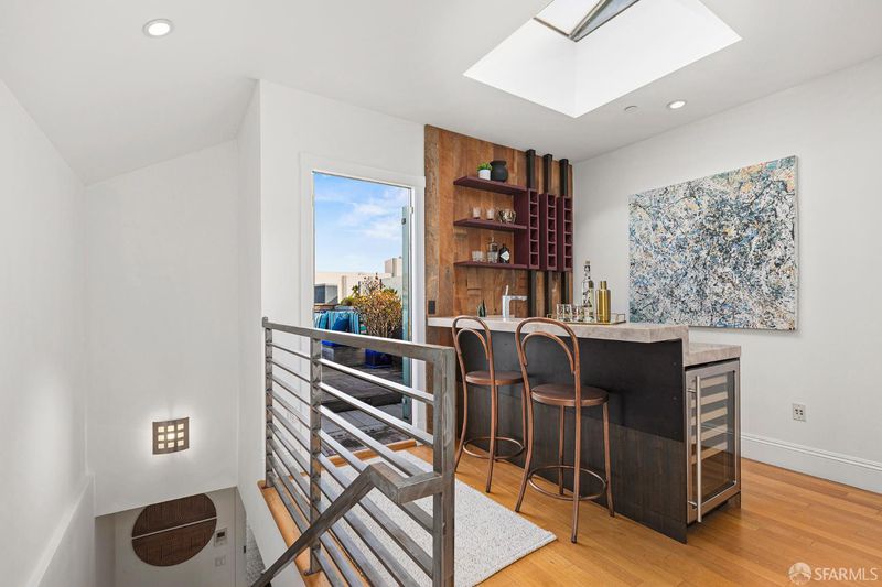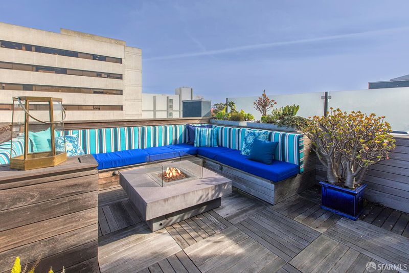 Welcome to 1356 Stevenson, a rare and sexy townhome set on a peaceful brick alley in the heart of the city. Built in 2008 and thoughtfully remodeled in 2013 by renowned EDG Design, the home offers the comfort of a single family residence. Custom details are layered throughout, including fabric wall coverings, refined wood wall treatments, and tailored window treatments, creating a cohesive and sophisticated interior. The main living level on the 3rd floor features a striking chef's kitchen, dining area, and living room with a fireplace. The chef's kitchen offers custom cabinets, marble counter tops, island, and stainless-steel appliances including a 6-burner gas range with a hood. On the top floor, there is a private grand rooftop deck (approx. 270 SF), panoramic views of the city with built-in seating, a BBQ and garden boxes - perfect for entertainment or basking in the sun. Leading to this outdoor space, is an interior custom bar with skylights, Quartzite counter, wine fridge and an ice maker. On the 2nd level: 2 bedrooms: one with an en-suite bath and the other shares a full bath in the hall. The grand primary suite occupies the entire 4th level with a spa-like bathroom (a double vanity, whirlpool tub, separate shower.) Completing this home is a long private garage and storage, with interior access to the home. Fantastic location, on a quiet tree-lined brick alley in the hub of the city, at the intersection of SOMA and the Mission. This stately townhome is just steps to the Valencia corridor, Hayes Valley, Castro and Downtown. With a Walkscore of 99, 1356 Stevenson has easy access to downtown (100 Transit Score) and right off Valencia and Market bike lanes (Bike Score 98.) This home is as beautiful and comfortable as it is convenient.