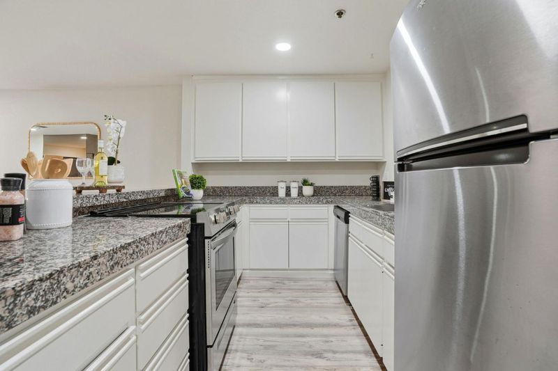 Beautifully updated ground-level residence in a gated community with two-bedroom suites, each with private baths. Kitchen features granite countertops and newer tile flooring. Freshly painted, move-in-ready, with extra storage off the back patio. Complex offers landscaped grounds, fountains, pool/spa, and secured underground parking. Located in prestigious Palo Alto schools district, near shopping, dining, and major commuter routes, perfect for first-time buyers seeking a stylish, low-maintenance lifestyle. Community amenities include a pool, hot tub, garden areas, mailroom, and private parking garages. HOA dues cover water, garbage, earthquake insurance, gated parking, and pool access. The unit includes one assigned gated parking space in basement (#93) plus additional unassigned parking in the non-gated garage. Park in the basement garage, then walk up the driveway. Use the gate on the left to enter.