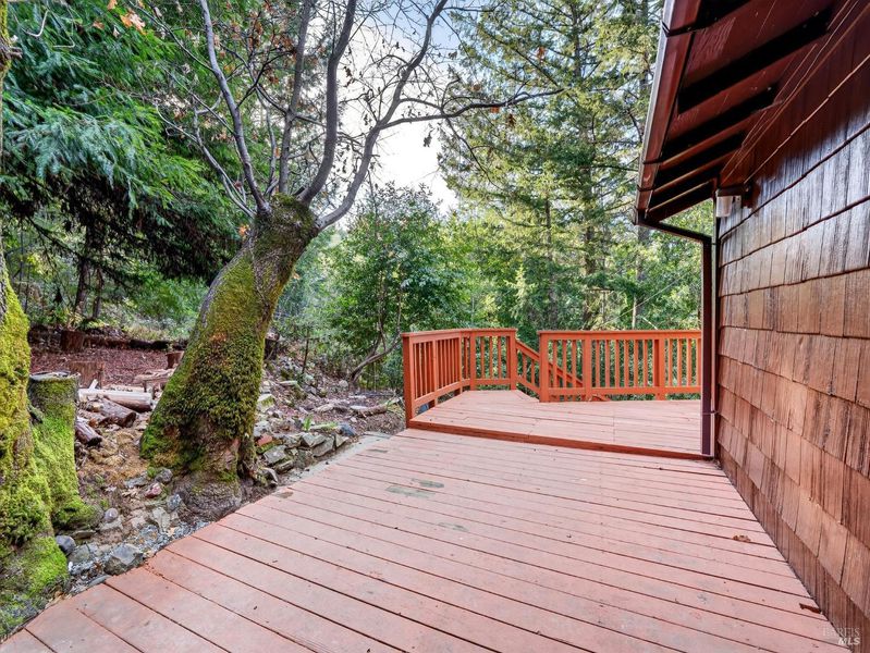 Step into a setting where nature, nostalgia, and opportunity converge. This rare dual-parcel offering at 10701 & 10711 Orr Springs Road presents a 2-bedroom, 1-bath vintage mountain retreat tucked into a bright, peaceful forest along a gently curving scenic route leading to the renowned Orr Hot Springs. The setting feels worlds away quiet, restorative, and deeply connected to the land making it ideal for both personal enjoyment and income potential. This 1,043 sq ft cabin-style home blends authentic character with everyday comfort, featuring wood floors, a fireplace insert, and classic rustic details throughout. The home includes a refrigerator, washer, and dryer, offering a turnkey opportunity for immediate use as a vacation rental, weekend escape, or full-time residence. With two legal parcels offering flexibility and long-term value, this sunlit forest retreat delivers privacy, serenity, and strong rental appeal, featuring a west-facing deck with expansive mountain views, wildlife sightings, and sunset vistas, an electric gated entry for added privacy, and an inviting front deck ideal for outdoor relaxation. Situated on .91 of an acre, this property is exceptionally well-suited for a high-demand short-term rental given its proximity to Orr Hot Springs, coastal Mendocino attractions, and scenic mountain drives. Whether positioned as a boutique Airbnb retreat, a personal sanctuary, or a hybrid investment, this property offers immediate enjoyment with long-term upside. A rare chance to own a timeless mountain escape with built-in lifestyle and investment potential.