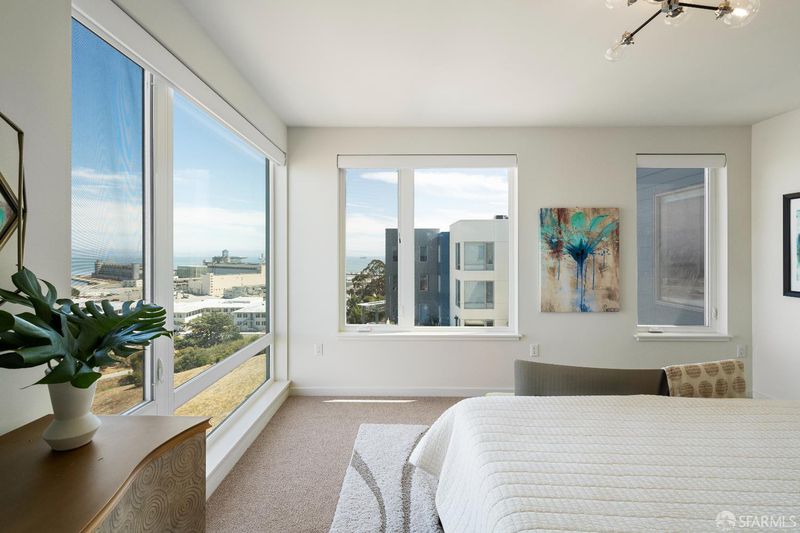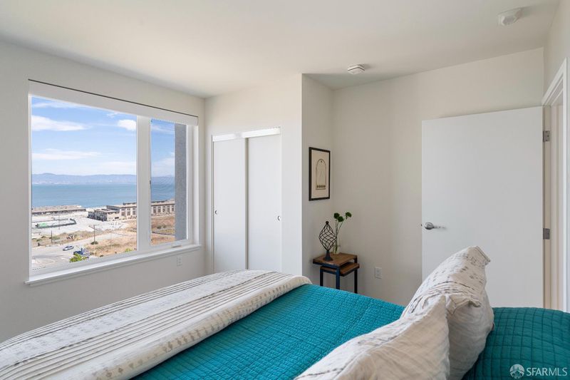 Welcome to 52 Innes Court #402, a top floor 3 bedroom, 2 bathroom condo in San Francisco's emerging Shipyard community. This light filled, view soaked retreat is anything but ordinary. Enjoy an open concept layout drenched in natural light with sweeping Bay views that define modern city living. The sleek kitchen features quartz countertops, stainless steel appliances, and generous storage, flowing seamlessly into the living and dining areas and out to your private balcony, perfect for entertaining or unwinding at sunset. The primary suite offers a walk in closet and spa style ensuite bath, while two additional bedrooms provide flexibility for a home office, guest room, or home gym. Modern conveniences include in unit laundry, elevator access, and one car garage parking. Community amenities include a BBQ courtyard, children's playground, public art installations, and scenic walking paths, all within a vibrant open air neighborhood. Just minutes to downtown, Oracle Park, Chase Center, and local dining and shopping, this is your opportunity to own a contemporary home in one of San Francisco's most exciting new enclaves.